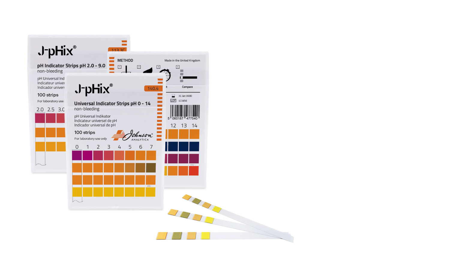 Testni lističi J-pHix omogočajo enostavno meritev pH vrednosti vode v območju pH 0 – 14. Testni listič pomočimo v vodo in po približno 10 sekundah lahko na priloženi barvni skali odčitamo pH vode.